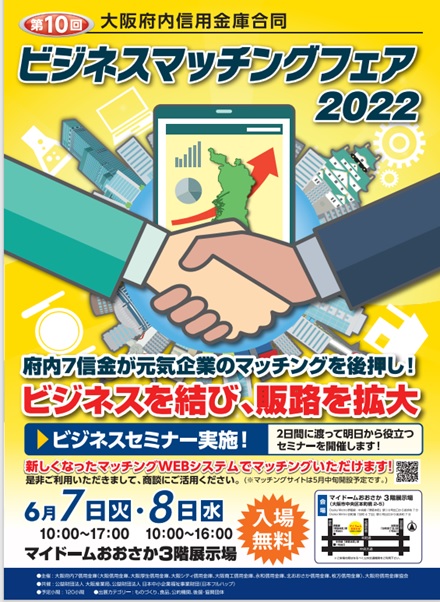 「第10回 大阪府内信用金庫合同ビジネスマッチングフェア2022」(ご予約不要+入場無料)